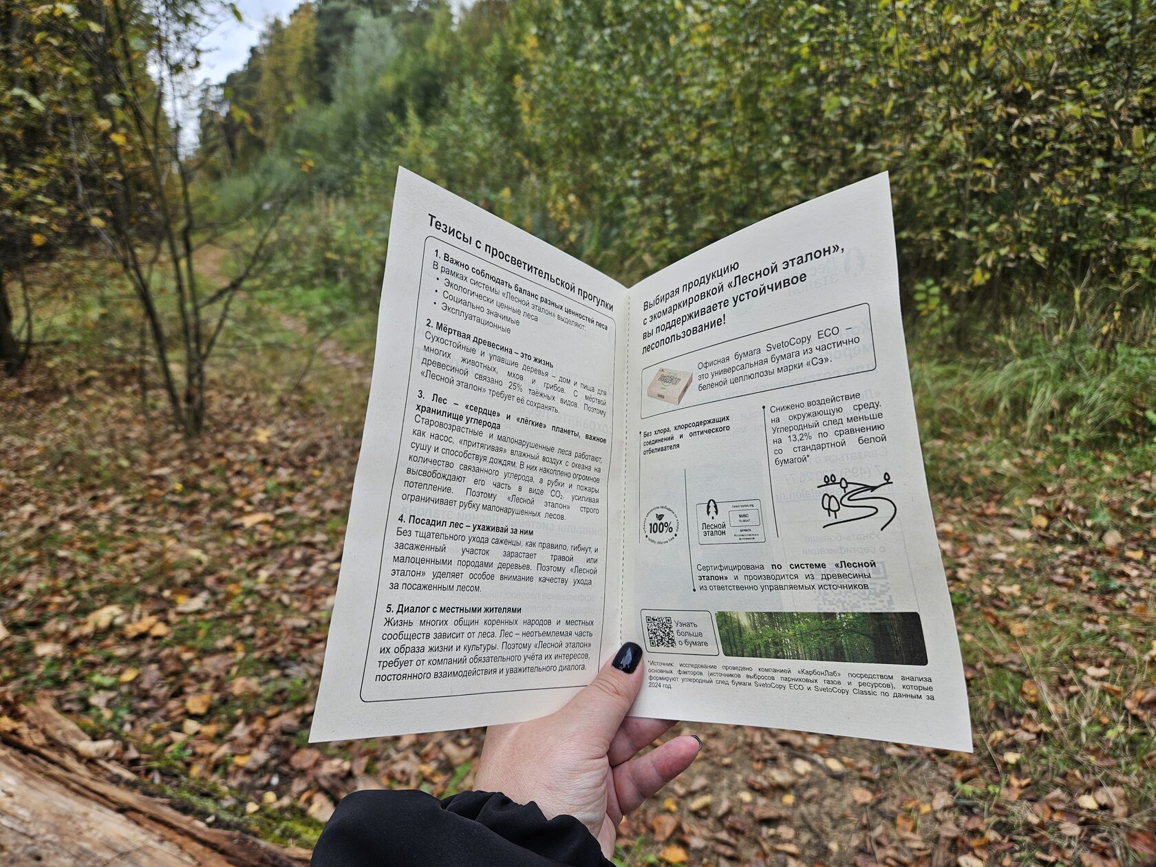 25 сентября в Подмосковье прошла просветительская лесная прогулка, организованная системой добровольной лесной сертификации «Лесной эталон» и компанией «Светогорский ЦБК», производителем бумаги SvetoCopy ECO. Мероприятие состоялось в рамках акции «Зелёный и здоровый офис 2025». Сотрудники экоориентированного бизнеса узнали, как использование сертифицированной бумаги и других офисных товаров из древесины помогает сохранять природу и получать преимущества в ESG-конкурсах и рейтингах.